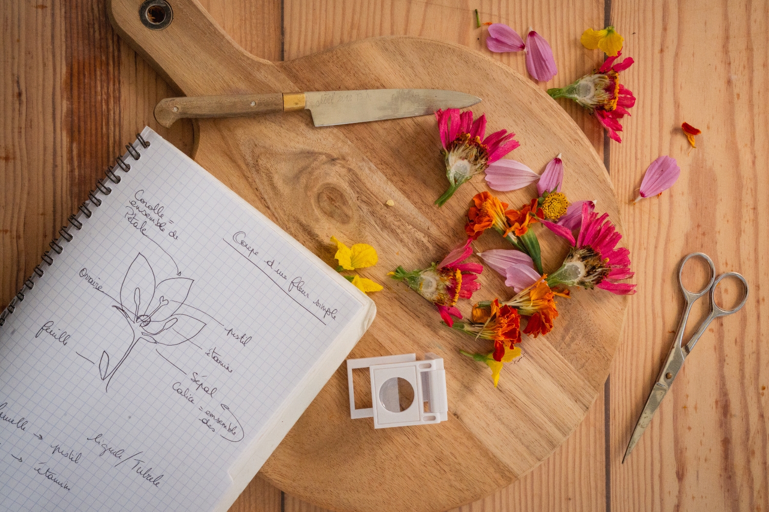 - La structure d’une plante, anatomie et dissection d’une fleur, fleurs particulières, fleurs mâles et fleurs femelles.